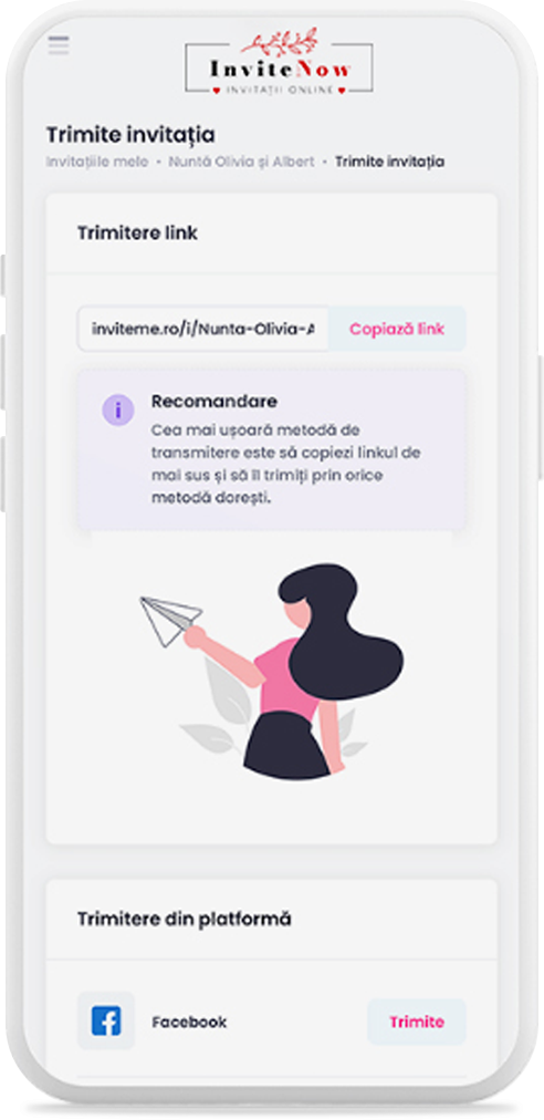 După efectuarea plății, invitația devine disponibilă pentru distribuire, pe loc și fără timp de așteptare. Sună bine?